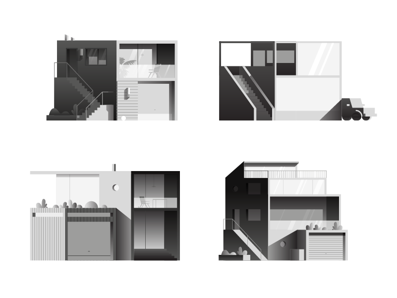 A series of minimalistic modern buildings with a focus on interesting shapes and forms.